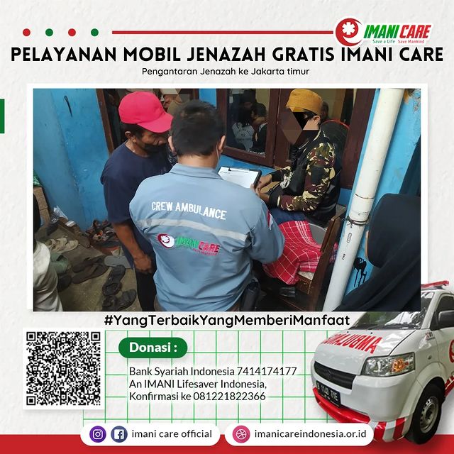 Pada pukul 16.00 WIB, tim Ambulans IMANI Care mengantarkan Jenazah Dhuafa, dari Rumah Sakit Polri menuju ke Jakarta Timur